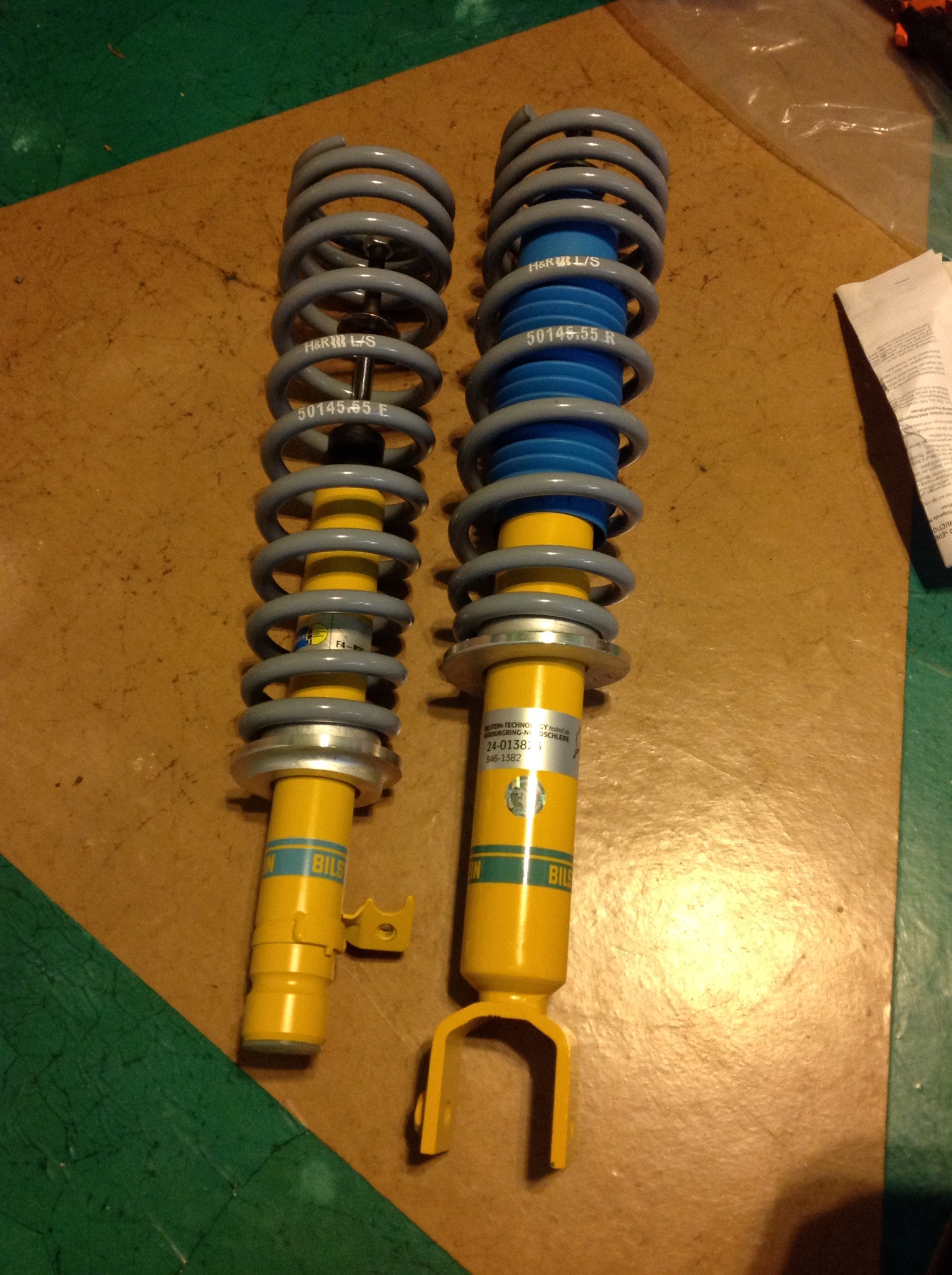 Here are the new struts and springs that I decided to pick up. I’ve always been a fan of bilstein shocks and struts, so going with my preference there I got some HD struts for the 90 hatch back. The springs are H&R, coincidentally also German made. They are for a 94-01 Integra. They are their OE springs which allows for stock ride height.