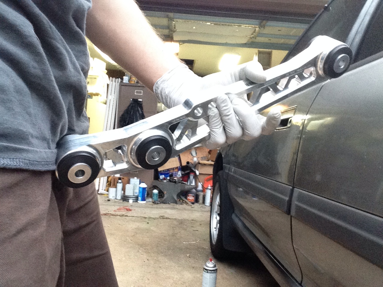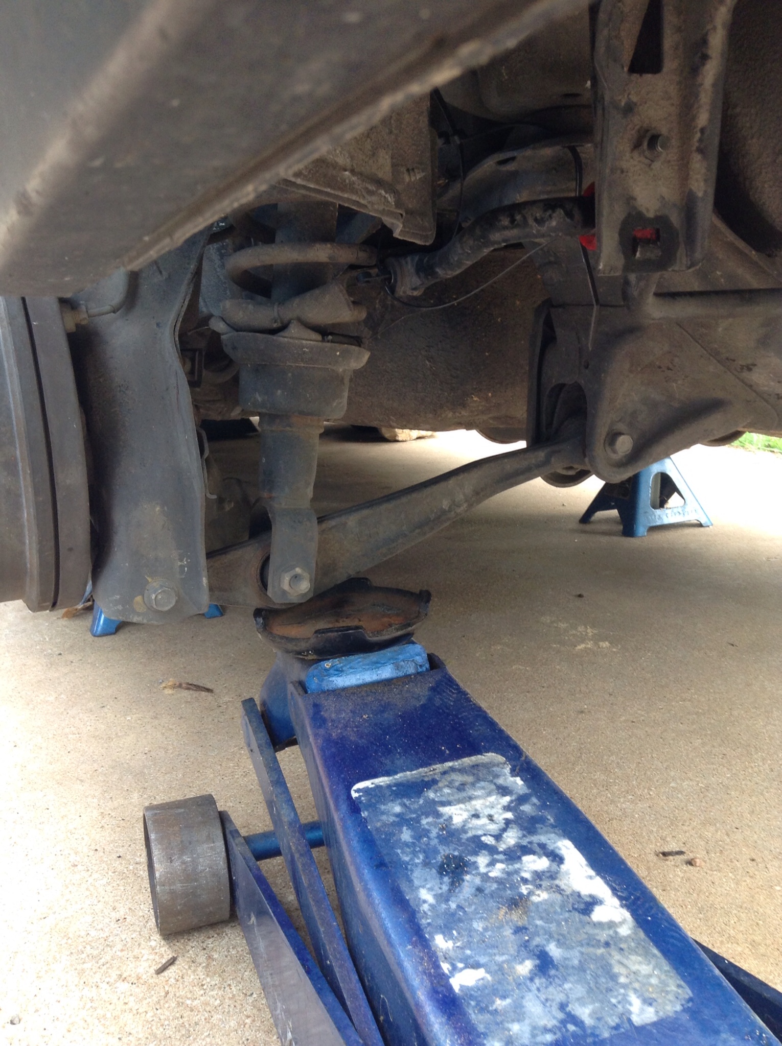 Then install your lower control arm. I’m not certain if there is a correct order for this, I started with the strut. Then used the jack to compress it a bit to get it in the other two spots.